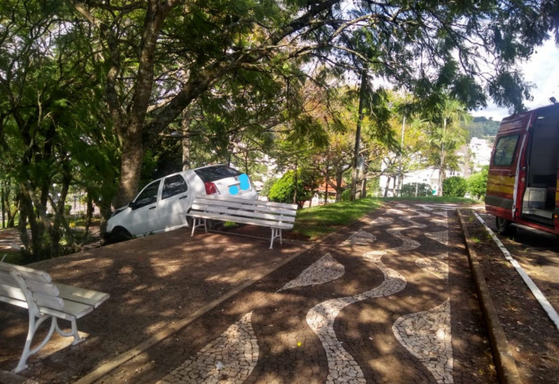 invadir praça pública e colidir em uma árvore. O acidente ocorreu na tarde de segunda-feira (18), por volta das 16h30,