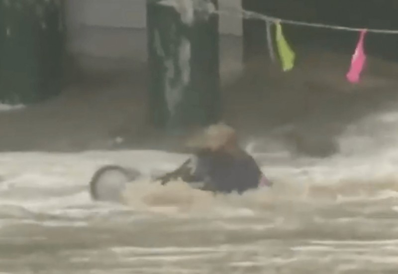 inusitado. Uma mulher encarou as ondas e a correnteza, depois que o mar revolto