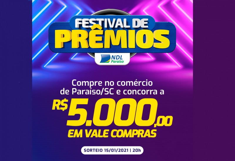 de Prêmios NDL Paraíso que fará 27 consumidores contemplados, sorteando R$ 5