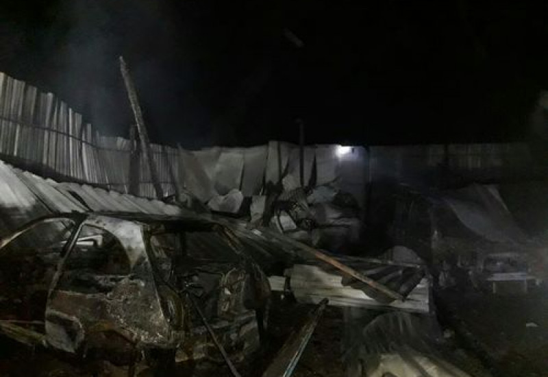Uma oficina mecânica e 15 veículos foram parcialmente destruídos por um incêndio na madrugada deste sábado (13), em linha Tiradentes, no interior de Pinhalzinho.