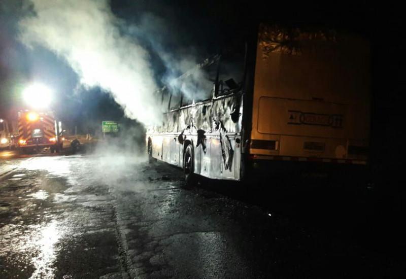 Um ônibus com placas de Saudades (SC), pegou fogo na manhã