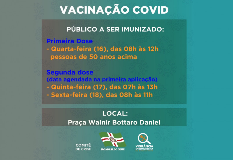 vacinação. A imunização ocorrerá na Praça Walnir Bottaro Daniel, conforme o