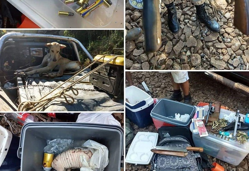 veicular, os policiais localizaram duas carcaças de animais silvestres (Tatu)
