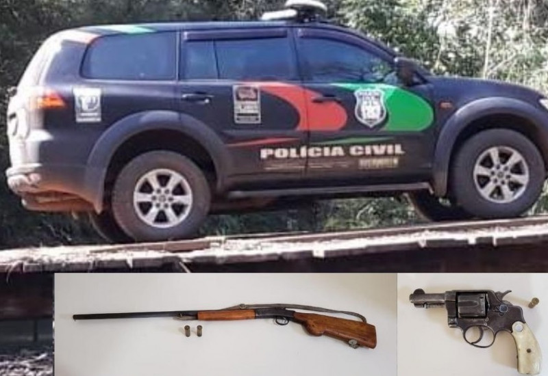 Nesta manhã, a Polícia Civil deu cumprimento ao mandado de busca e apreensão localizando duas armas de fogo, contudo, o investigado não estava em sua residência, motivo pelo qual não foi feita sua prisão.