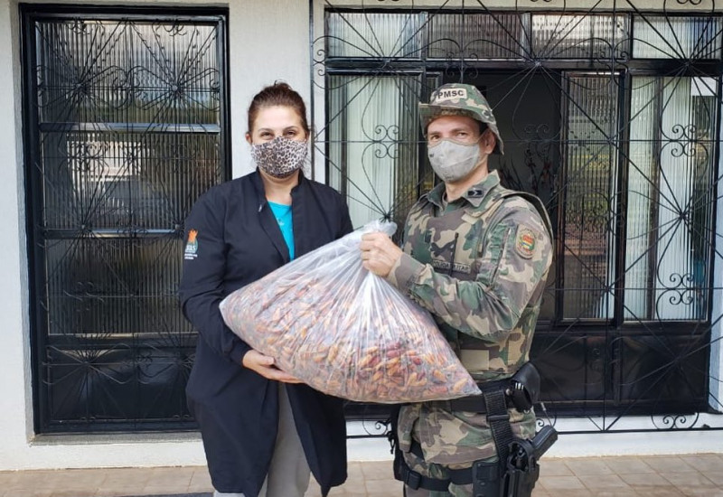 realizou a doação de aproximadamente 66 kg de pinhão apreendido, para entidades