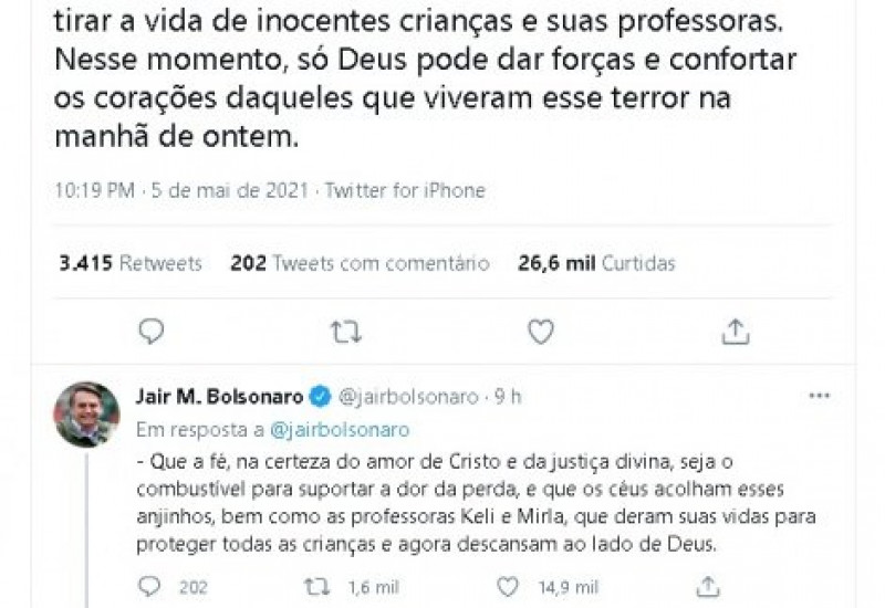 covardemente tirar a vida de inocentes crianças e suas professoras”.