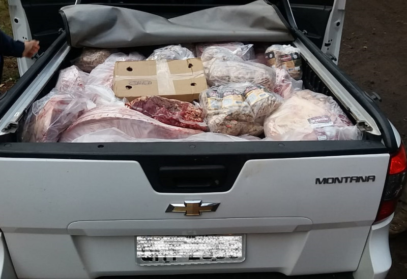 transportava 600 kg de carne bovina e suína na caçamba do veículo. A carne