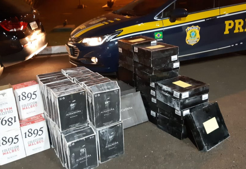 PRF apreende 96 caixas de vinhos argentinos sem o devido desembaraço aduneiro, em Guaraciaba