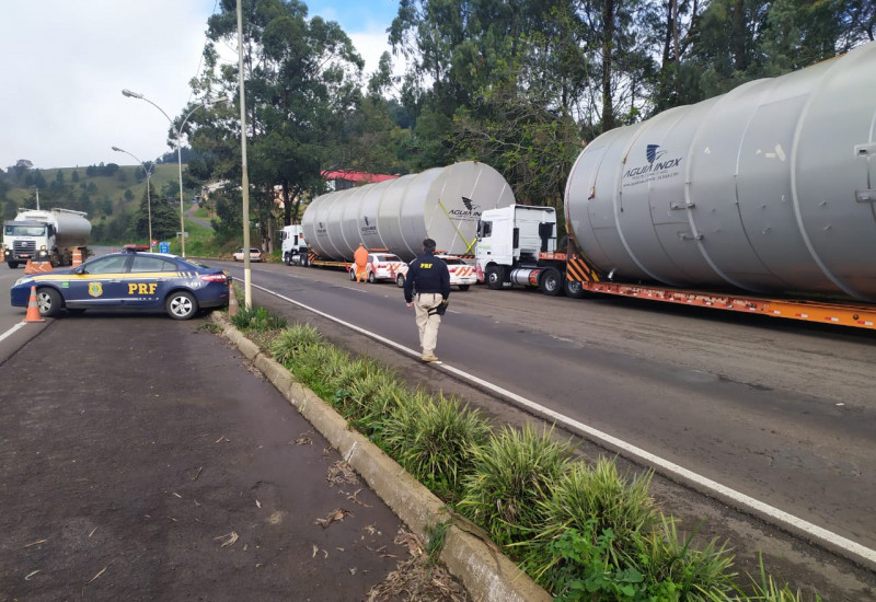 PRF flagra duas combinações cavalo trator e semirreboque com excesso de dimensões e sem escolta