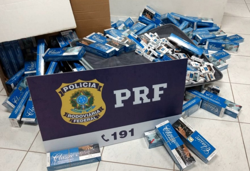 maços de cigarros contrabandeados na noite de ontem (17), na BR 282, em
