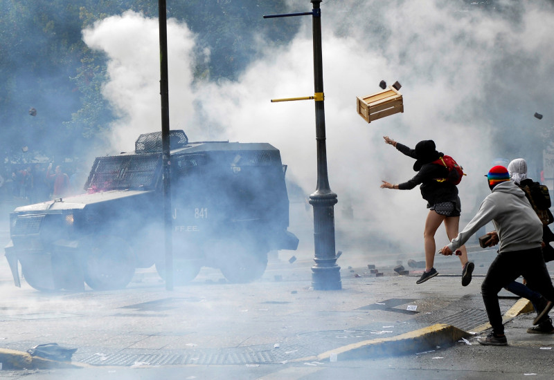 Os confrontos se deslocaram para várias áreas da periferia de Santiago,