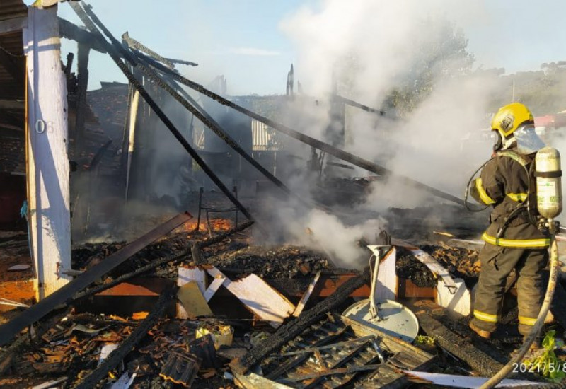 Os bombeiros fizeram o rescaldo da residência. A Polícia