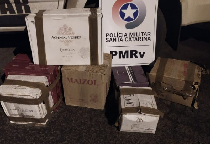 R$ 13 mil em vinho contrabandeado da Argentina é apreendido na SC 161, em Flor do Sertão