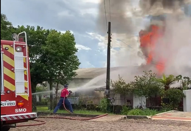 Um incêndio atingiu uma residência na tarde desta terça-feira (02), por volta das 15h10min, na rua La Salle, no bairro Agostini, em São Miguel do Oeste. O Corpo de