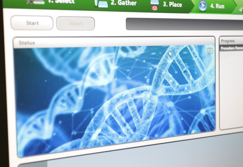 ácidos ribonucleicos (RNA). O equipamento é usado em testes de biologia