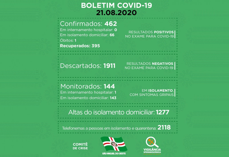 Boletim epidemiológico do Covid-19 de São Miguel do Oeste, aponta nesta sexta-feira (21), que o município tem ainda 66 pacientes com o vírus ativo.