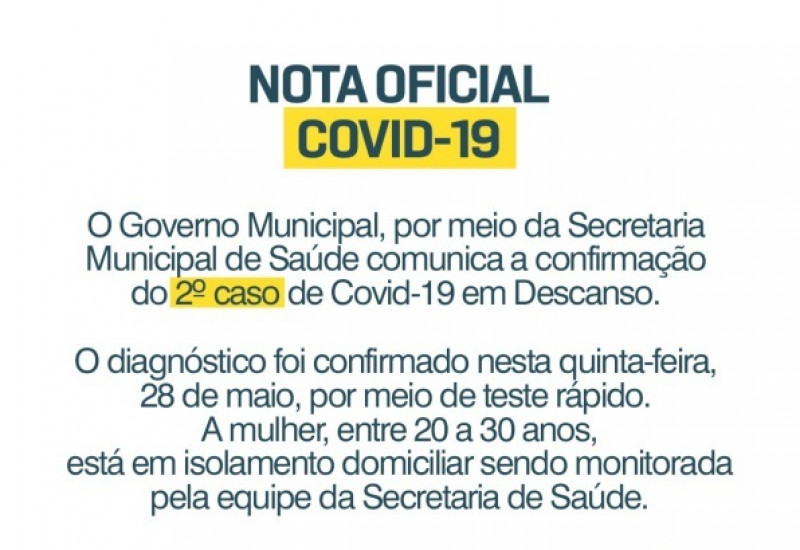 Descanso confirmou nesta quinta-feira (28) o segundo caso de coronavírus.