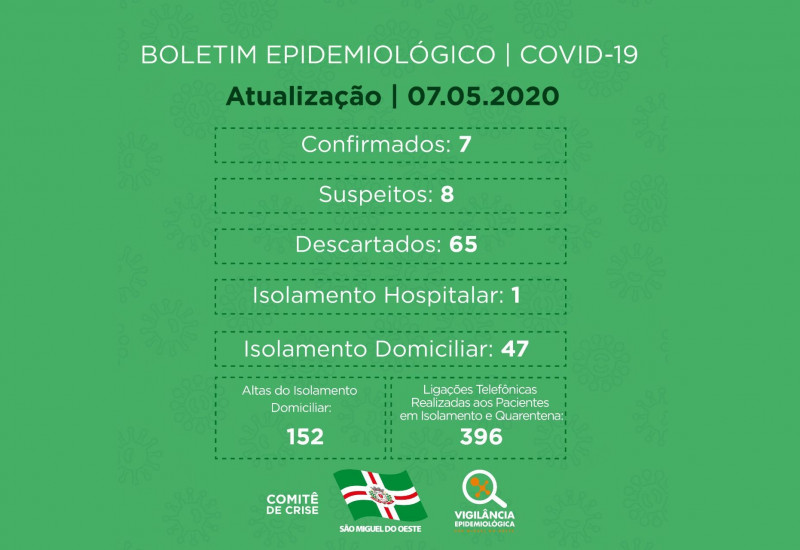 A nova atualização mostrou dois novos casos confirmados em São Miguel do Oeste. Trata-se de uma mulher de 60 anos e de um homem de 48 anos, ambos com sintomas de quadros gripais e respiratórios. Eles não precisaram internação, e estão em isolamento domiciliar, acompanhados pela Vigilância Epidemiológica.