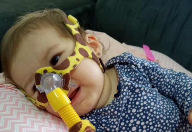 Helena, de apenas um ano e quatro meses, que tem a doença AME (Atrofia Muscular