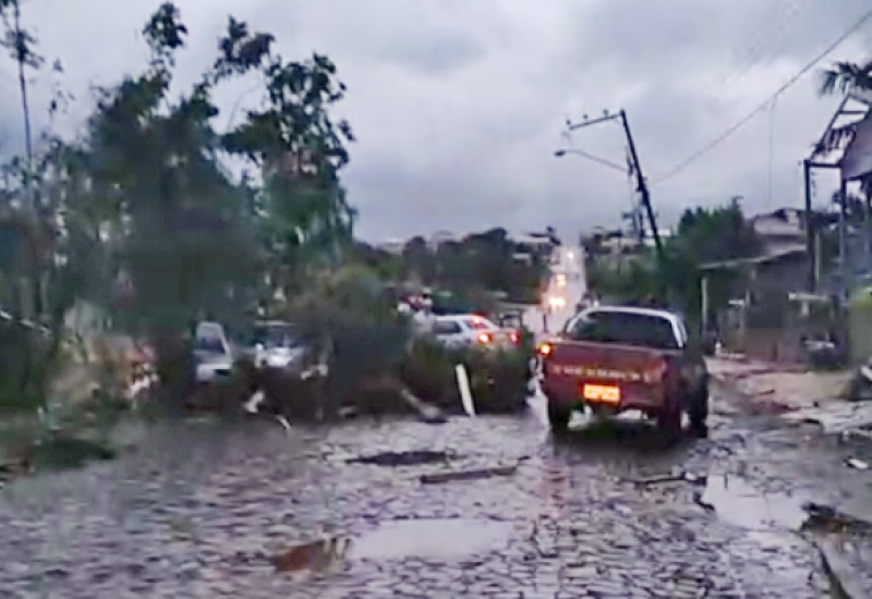 casas destelhadas, árvores arrancadas e um supermercado teve todo o seu telhado