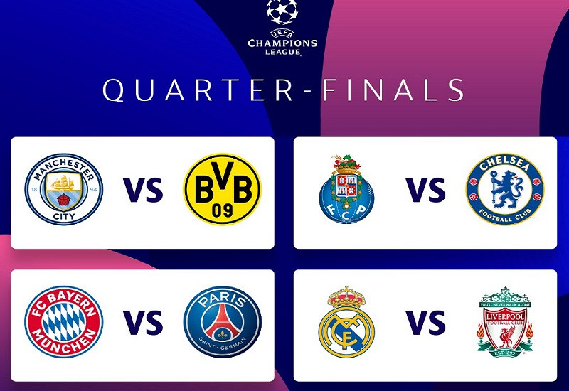 Além de Bayern de Munique e PSG, o Real Madrid enfrentará o Liverpool em confronto de dois campeões recentes. O Manchester City pegará o Borussia Dortmund, e o Porto duelará contra o Chelsea.