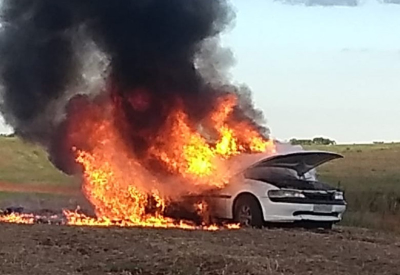O veículo GM Vectra, com placas de Campo Erê, pegou fogo depois que seu condutor andou com pelo