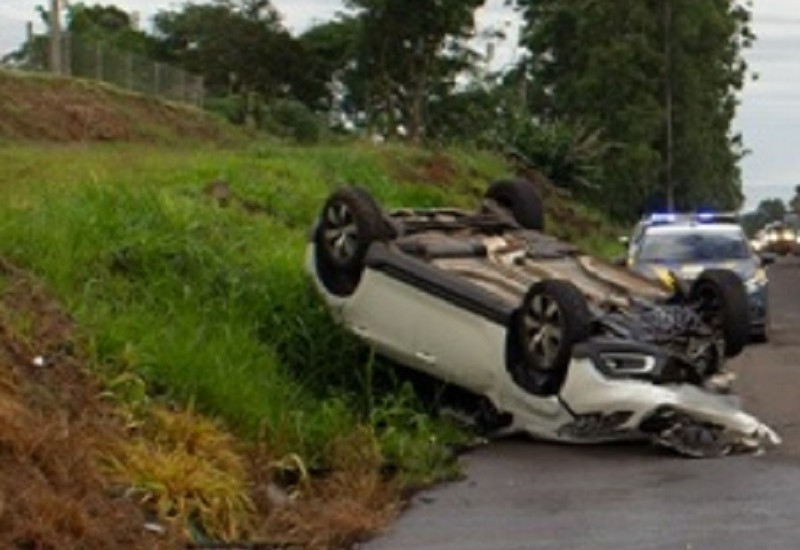 Veículo tomba após acidente na BR 163 e deixa dois feridos