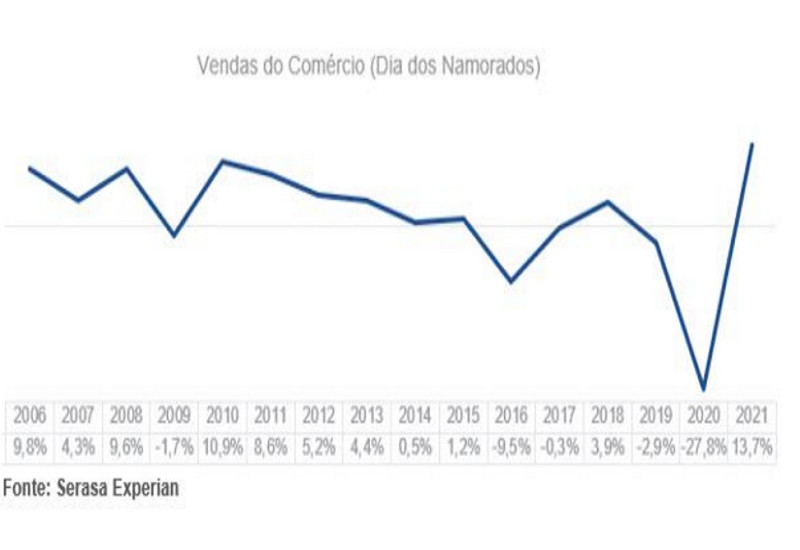 foi revelada expansão de 11,3% na semana do Dia dos Namorados e queda de 1,0%