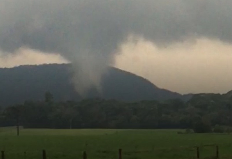 Vídeos gravados por moradores de Irineópolis mostram o momento em que a nuvem em formato espiral atinge o solo.