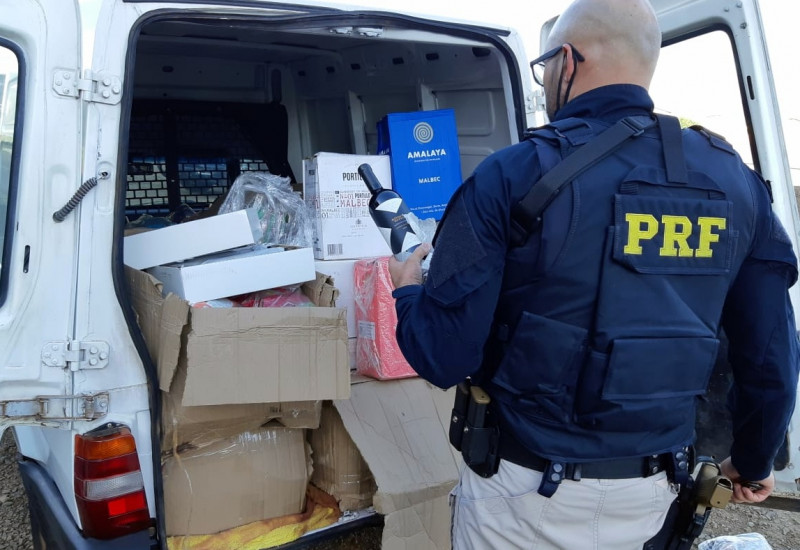 Durante fiscalização de rotina a um Fiat/Fiorino placas de Balneário Camboriú, o motorista afirmou aos agentes que no compartimento de carga do furgão havia apenas salgadinhos industrializados. No entanto, por debaixo das caixas do alimento, os policiais descobriram 60 caixas de vinho importado sem qualquer comprovação fiscal aduaneira.